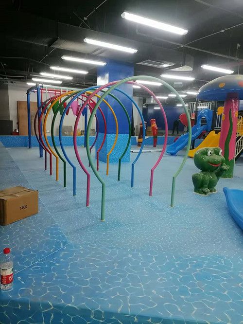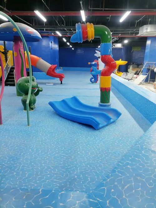 本項目位于貴州省貴陽市,為室內(nèi)戲水池項目,采用1.5mm顆粒防滑水波紋游泳池防水膠膜,整體效果如下:
